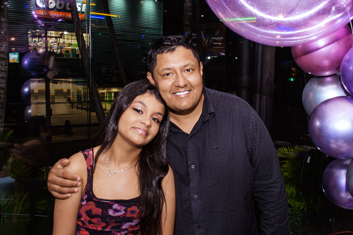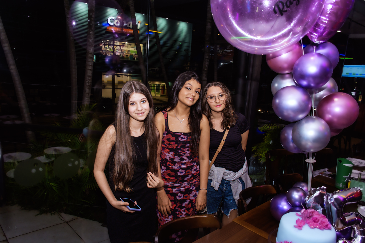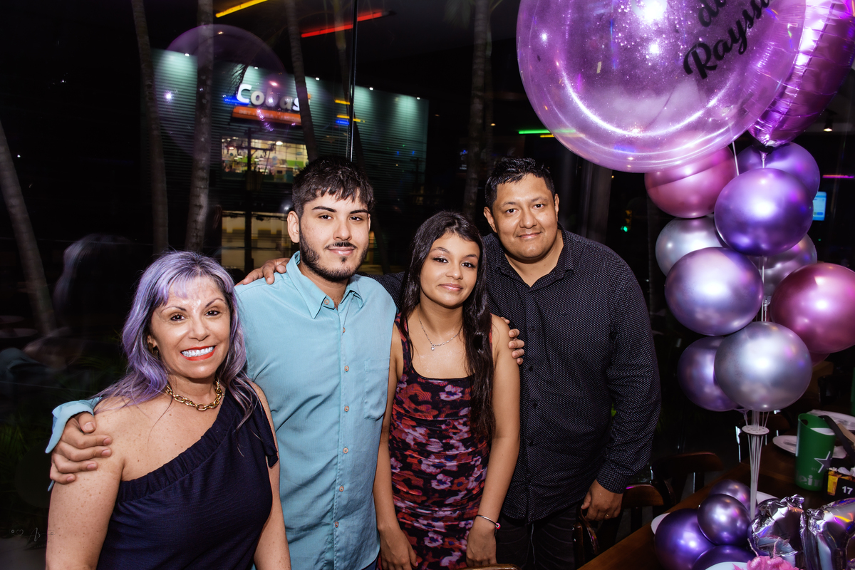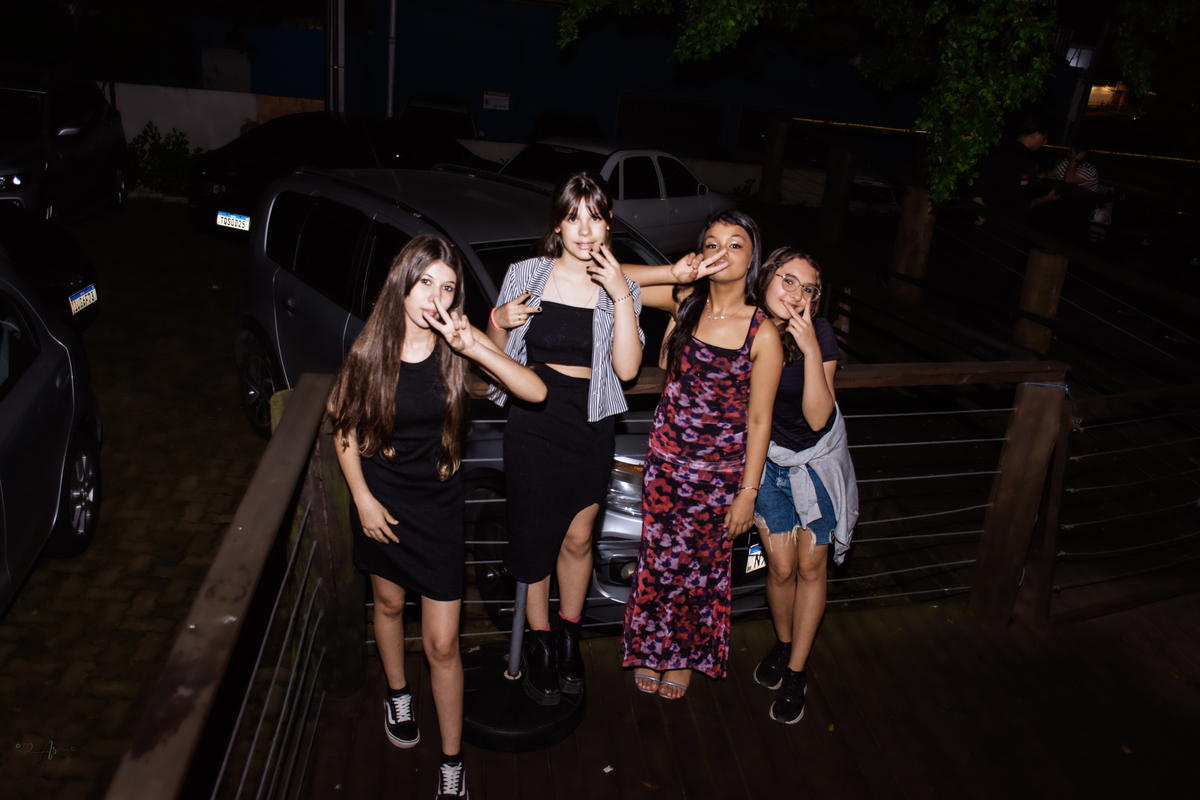 Os pais estavam radiantes, transbordando alegria e orgulho. Rayssa, sempre atenciosa, fez questão de receber todos os convidados com o seu jeitinho doce. No começo, um pouco tímida diante das câmeras… mas bastou estar com os amigos para se soltar e mostrar todo o seu brilho! ✨ No fim da noite, já estava uma verdadeira modelo profissional nas fotos 😄📸