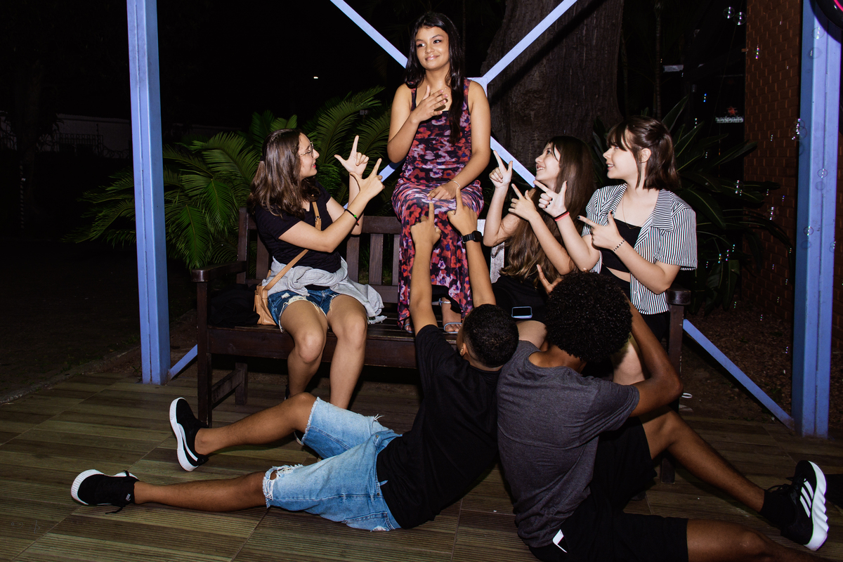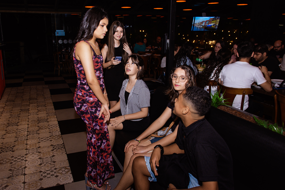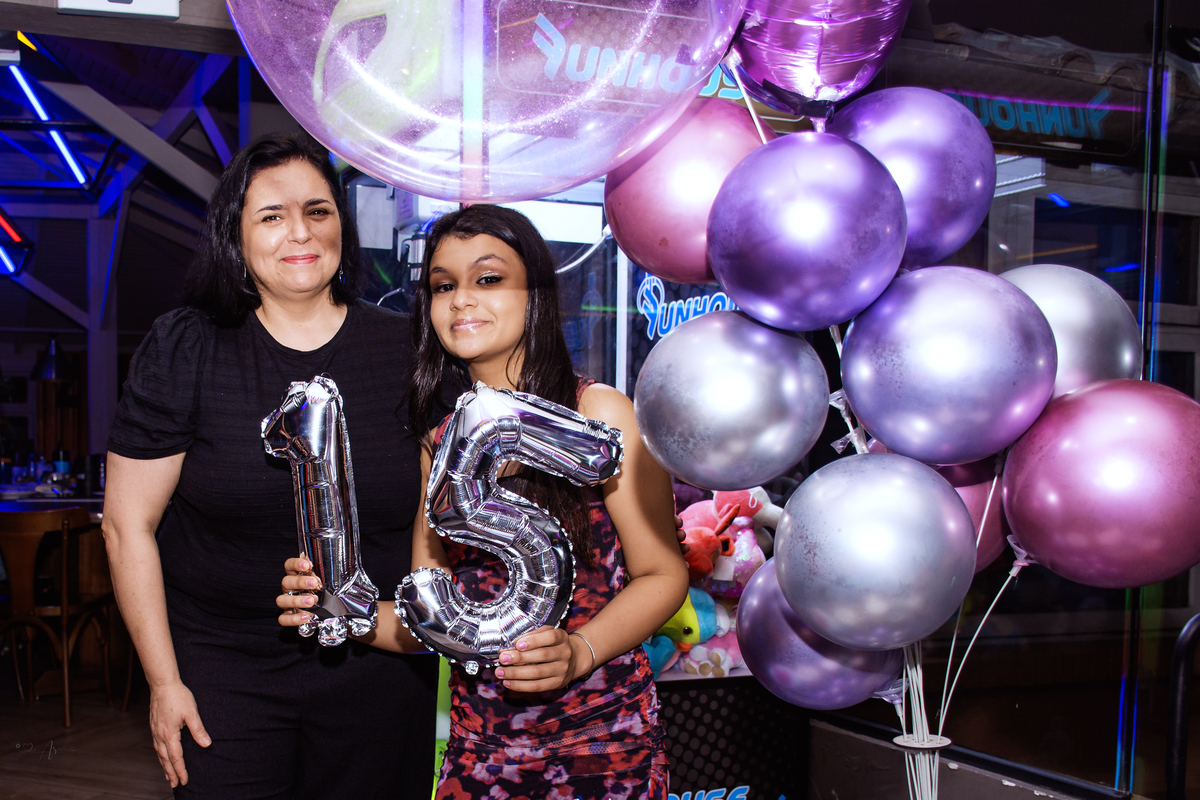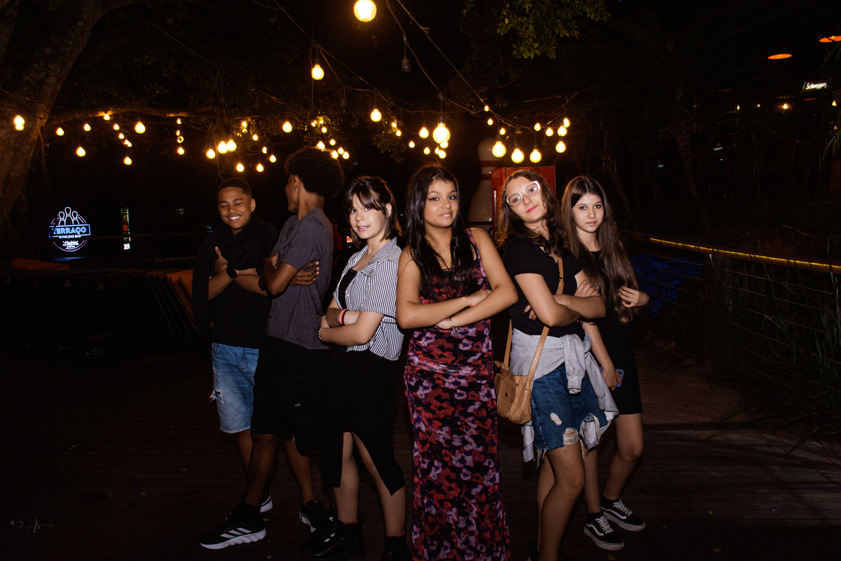 Os pais estavam radiantes, transbordando alegria e orgulho. Rayssa, sempre atenciosa, fez questão de receber todos os convidados com o seu jeitinho doce. No começo, um pouco tímida diante das câmeras… mas bastou estar com os amigos para se soltar e mostrar todo o seu brilho! ✨ No fim da noite, já estava uma verdadeira modelo profissional nas fotos 😄📸